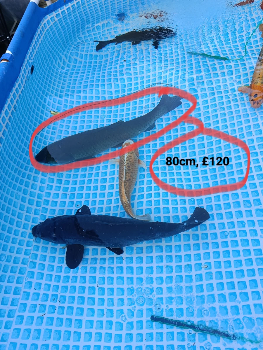 I have surplus koi for sale. 45-50cm 4 years old, over 50cm around 5 years old, around 80cm 5 years old